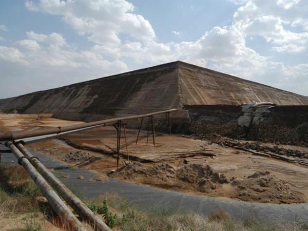 赤泥堆场的建设依据所处地理位置在山区可利用山谷深坑等地形建设;在平原地区可采用在平地上堆出深坑建设;在临海地区采用管道直接输入深海中,使其自然沉积于海底等方法。这种处置方法占用大量土地,且赤泥中的化学成分入渗土地,易造成土地碱化、沼泽化,地下水污染等生态环境问题。