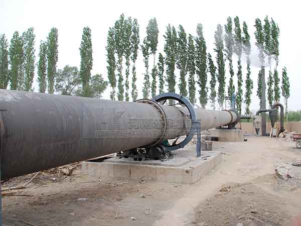 2.接着,石灰石在预热器被1150℃窑烟气加热到900℃左右,约有30%分解,经液压推杆推入回转窑内,石灰石在回转窑内经烧结分解为CaO和CO2;分解后生成的石灰石进入冷却器,在冷却器内被鼓入的冷空气冷却到100℃一下排出;经热交换的600℃热空气进入窑和煤气混合燃烧。废气在兑入冷风经引风机进入袋式除尘器,再经排风机进入烟囱。