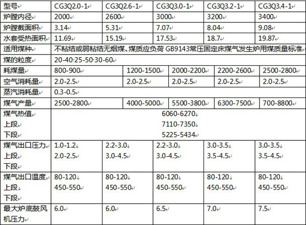 两段式煤气发生炉技术参数
